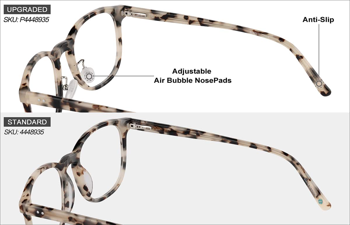 - Fit: Slip-free adjustable Air Bubble nose pads help personalize the fit, and spring hinges support smooth, flexible movement throughout the day.