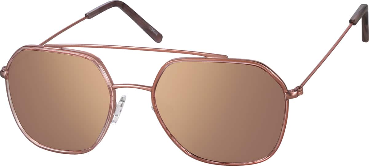 Lightweight frames make all-day wear easy, no slipping or digging.Using advanced edging technology and high-quality materials, our premium sunglasses have a luxurious feel with subtly curved lenses. These metal aviators have angular rims for a look that is totally now. The wide frame is available in the following colors: rose gold, tortoiseshell, and brown/gray stripe pattern. Adjustable nose pads provide a comfortable fit. Need progressives? Shop a similar frame style here.