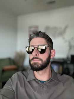 Touch of blue colored metal surrounded by tortoise shell frames. Individual nose pads keep them comfortable & sitting properly on my face.