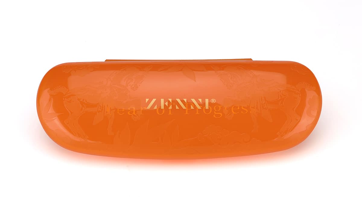 - Design: Keep your Zennis safe and stylish with this Lunar New Year clamshell case. Featuring an orange design with a gold Zenni logo and an embossed horse pattern, it offers a secure closure and a microfiber lining to protect your eyewear from scratches. Fits most Zenni glasses and sunglasses.
