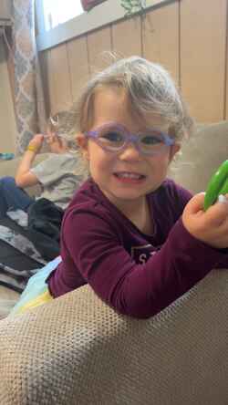 These glasses are perfect for small children! My son is 4.5 but like a lot of kids with Down Syndrome he is on the small side (wears 2t/3t for reference) so these are perfect. They can be worn a multitude of ways as purchased, but we found that instead of the around the head elastic strap which is a bit constricting, we wanted him used to the frames and more comfortable so in five minutes took an extra piece of elastic we had and with a bit of hot glue created a “new” option with the elastic attached to the frame. This is his preferred way to wear them now! Important note: it was less than $10 extra for transition lenses and so when we came back for a backup pair we chose that instead and I wish I had made both sets transitions to start with as we go outside a lot! We get compliments everywhere we go and they are bendy enough to hold up to him. He did throw them off a lot the first few weeks but after we added the new back strap option that has stopped (except late at night when he’s ready to cuddle/sleep). We love these frames!!