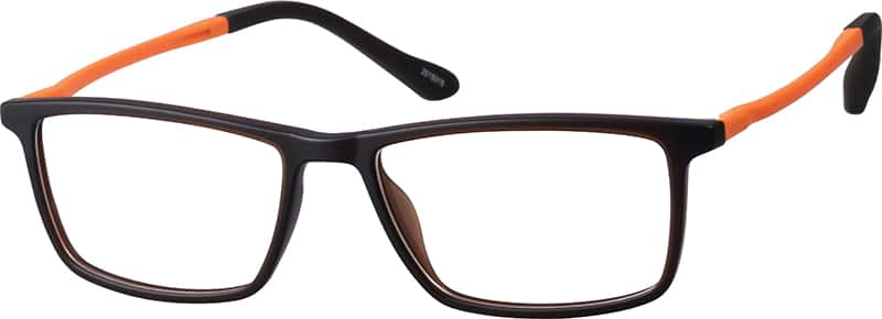 Easy returns with industry-leading customer satisfaction.A pop of primary color on the temple arms jazzes up these classic rectangle eyeglasses. Made with TR90 plastic, the medium-sized frame is ultra-lightweight and flexible. The frame comes in the following matte options: brown with orange temple arms, navy blue with blue arms, and black with green arms.