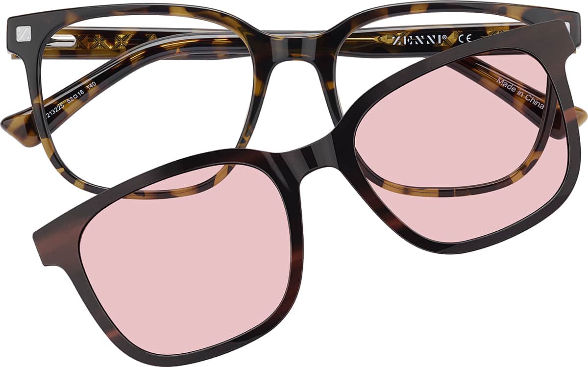 Tortoiseshell Square Clip-on Sunglasses #99117825