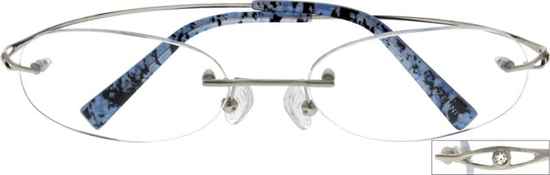 Lightweight frames make all-day wear easy, no slipping or digging.This rimless unisex frame is made from pure titanium and acetate. It comes with a hingeless design, extremely flexible temples and a crystal on the temple arms. It also features adjustable silicone nosepads.