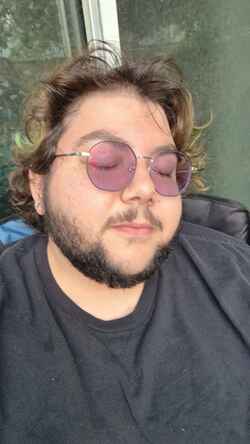I was looking for a cross of Spencer Agnew and Jonathan Bailey from Jurassic World and that's exactly what I got. The frames suit me perfectly. I got the fancy Zenni special thing with the pink lens, and they're not even noticeable. And the transitions to purple are so good!