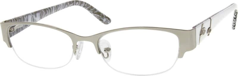 Easy returns with industry-leading customer satisfaction.Sometimes a customer review describes a pair of glasses so well we can’t resist quoting from it. A case in point is the most-liked review of this half-rim, oval, medium-narrow, hypoallergenic stainless steel and acetate Women’s eyeglasses frame.We’re delighted to see that every review of these glasses is positive, but this one captures the frame’s attributes so well: “Solid, feminine, classic, and subtly edgy all at the same time!” We would just like to add that, as some of the other reviews point out, the stainless steel front rims of both the silver and pinkish purple models are much shinier than they appear to be on the website. With silicone nose pads for a comfortable fit and silver, jeweled leaf ornaments on the spring-hinged, acetate temple arms (which are white on the outside, patterned light and dark gray on the inside of the silver pair, and dark, muted purple on the outside, patterned dark purple and lavender on the inside of the pinkish purple pair), these glasses are – to return to that admiring review – “like sexy underwear … just for you!” We couldn’t put it better ourselves.