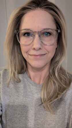 Glasses are a light neutral pink shade and with spring edges and a keyhole bridge. The design is simple but quality and materials are excellent. I feel like they may be a little too tall/square shaped and narrow for my face so the jury is still out on how much I like them. But they are well made and high quality, and the prescription is spot on.