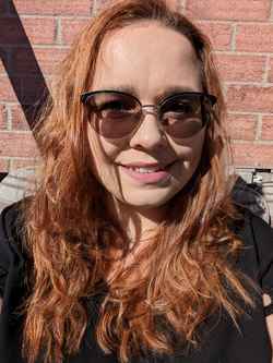 Glasses are purple, not brown
