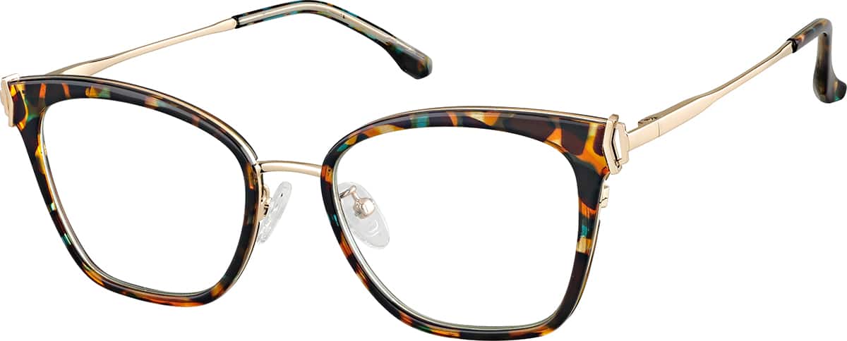 Durable spring-action temples for lasting, pressure-free comfort.Add some flourish to your frames in these stylish cat-eye glasses. Made with lightweight TR90 plastic, the look features a squared cat-eye shape, with impossibly thin metal temple arms. For added comfort, the look is fitted with spring hinges and soft plastic temple tips.
